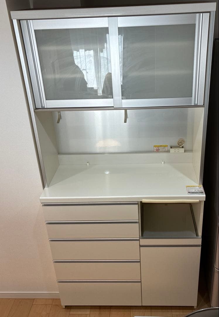 - 炊飯器やレンジを置けて食器も入るので、 狭いキッチンにぴったりです。 収納が足りない場合は、 同じシリーズの食器棚を購入しようと考えています。