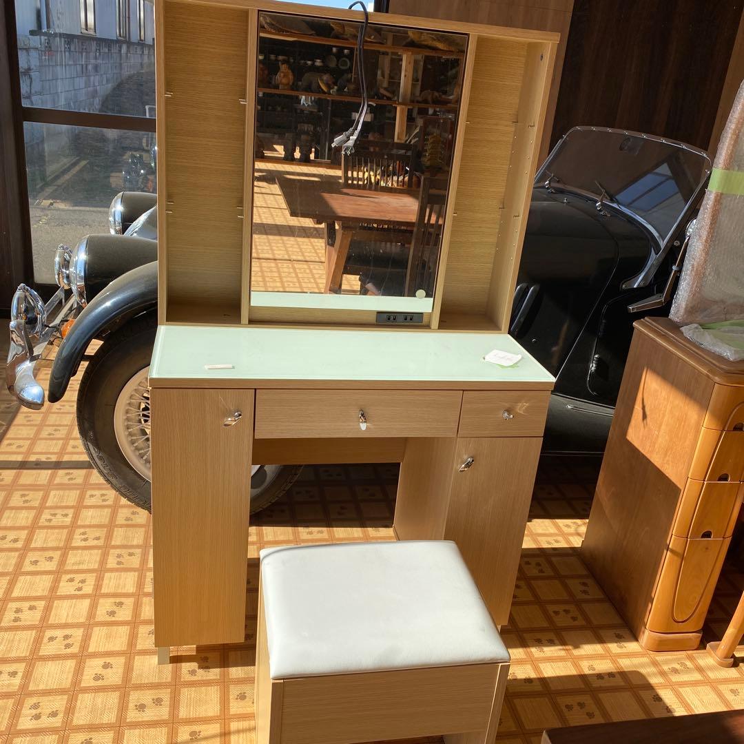 - 使っていたドレッサーが古くなり、いろいろと探し迷って数ヶ月。前のデザインの物でも良かったのですが、鏡をしまえばデスクにもなるという利便性が気に入り、こちらの物を購入しました。コンパクトながらチェストもついて、収納も抜群で感激です。色も落ち着いていて気に入ってます。組み立てが無いのも助かりました。 国産品でこのお値段、良い買物をした!と思います。大切に使います。ありがとうございました。